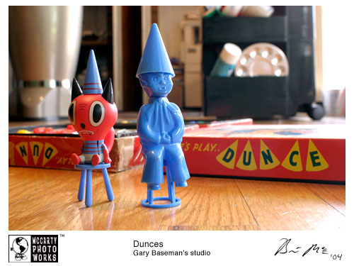 While You Were Sleeping Issue #28 of While You Were Sleeping Magazine has hit newsstands with two articles that I wrote and photographed. Go get it now!! I thought you'd enjoy a sneak peek. Above is a photo I shot for an article on the amazingly talented artist, illustrator, toy designer, and cartoonist Gary Baseman. There was supposed to be an entire series of images that both Gary and I shot to accompany the article, but I'm sad to say that most of them got cut due to space restrictions. However, I enjoyed the shots so much that I've put them online in a special section here. They are a look into Baseman's studio and some of the items he draws inspiration from. The second article is on the upcoming mini-figure line Neo Kaiju that is being produced by STRANGEco and Super 7 Magazine. It is an unbelievable collaboration between these companies and some of the most groundbreaking artists today - Gary Baseman, Tim Biskup, Seonna Hong, Kathy Schorr, and Todd Schorr. The little guy you see down there at the bottom is an unpainted prototype of Tim Biskup's "Birduzasu." The past month has been insane (in a good way) for the studio. Lots of new clients, and lots of killer assignments. Be looking for some really fun stuff that I can release in the coming months. Hope
